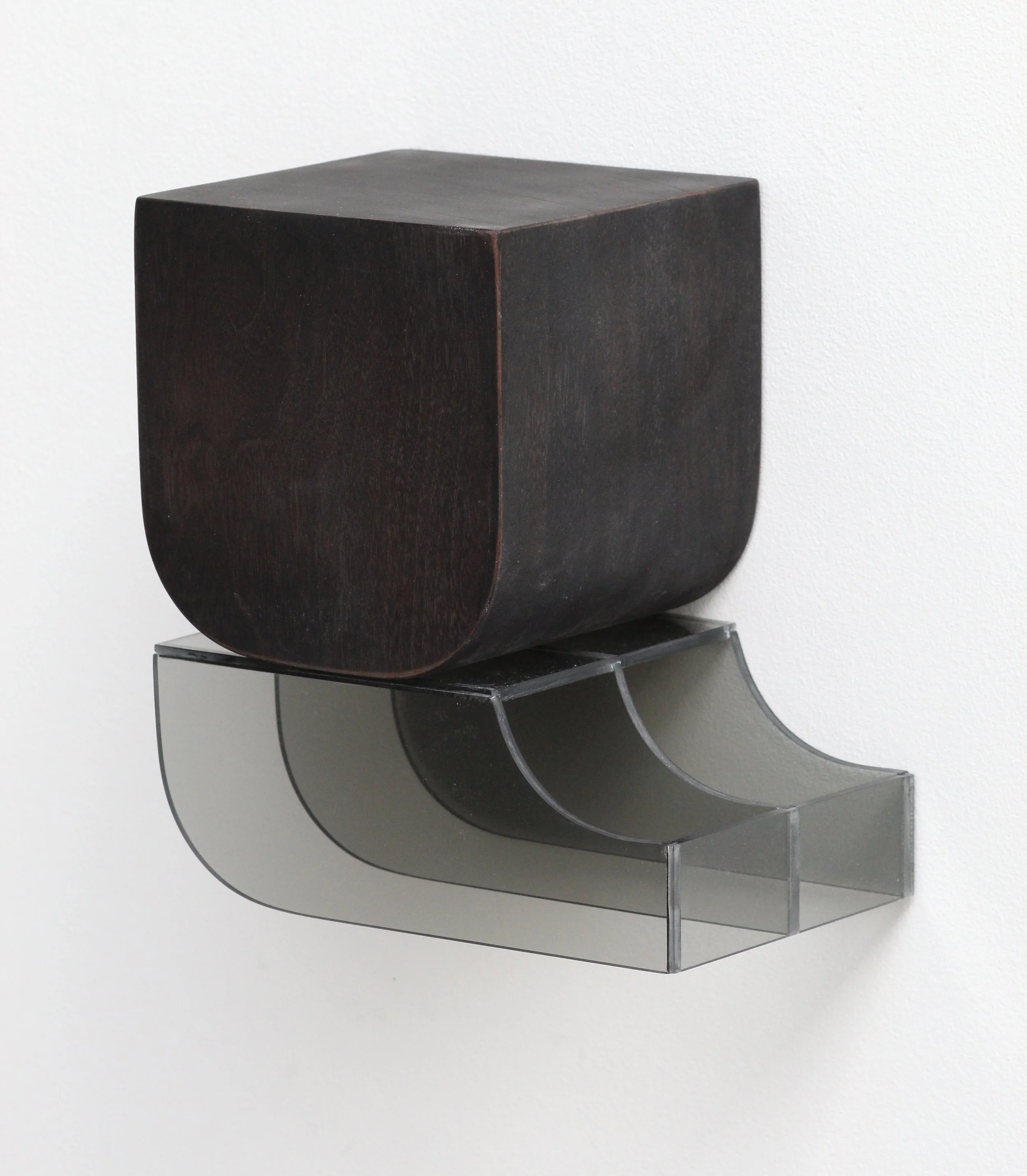 Bracket (L), dyed walnut and plexiglas, 11 1/2”H x 10 1/2”W x 7”D, 2024